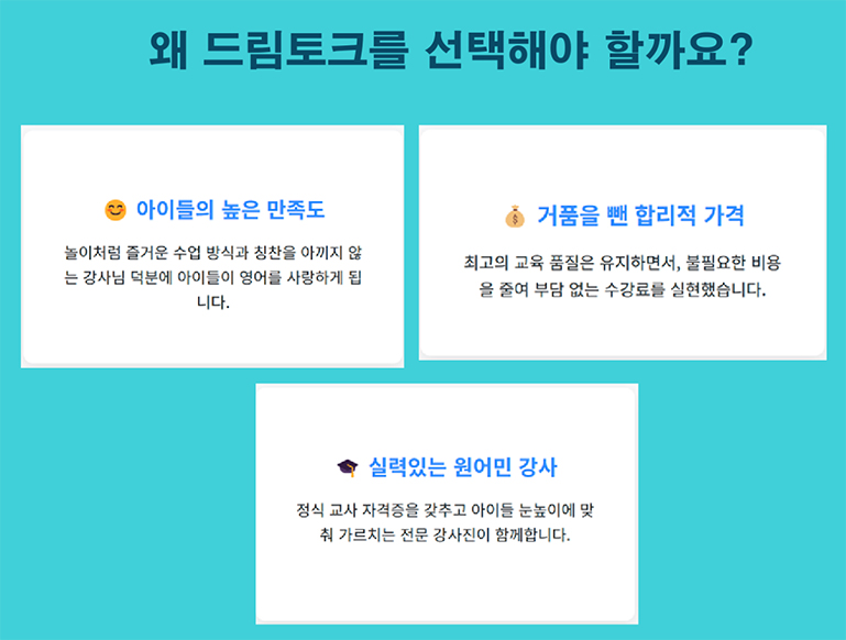 제 말도 잘 들어주시고, 칭찬도 많이 해주셔서 수업 할 때 너무 행복했어요